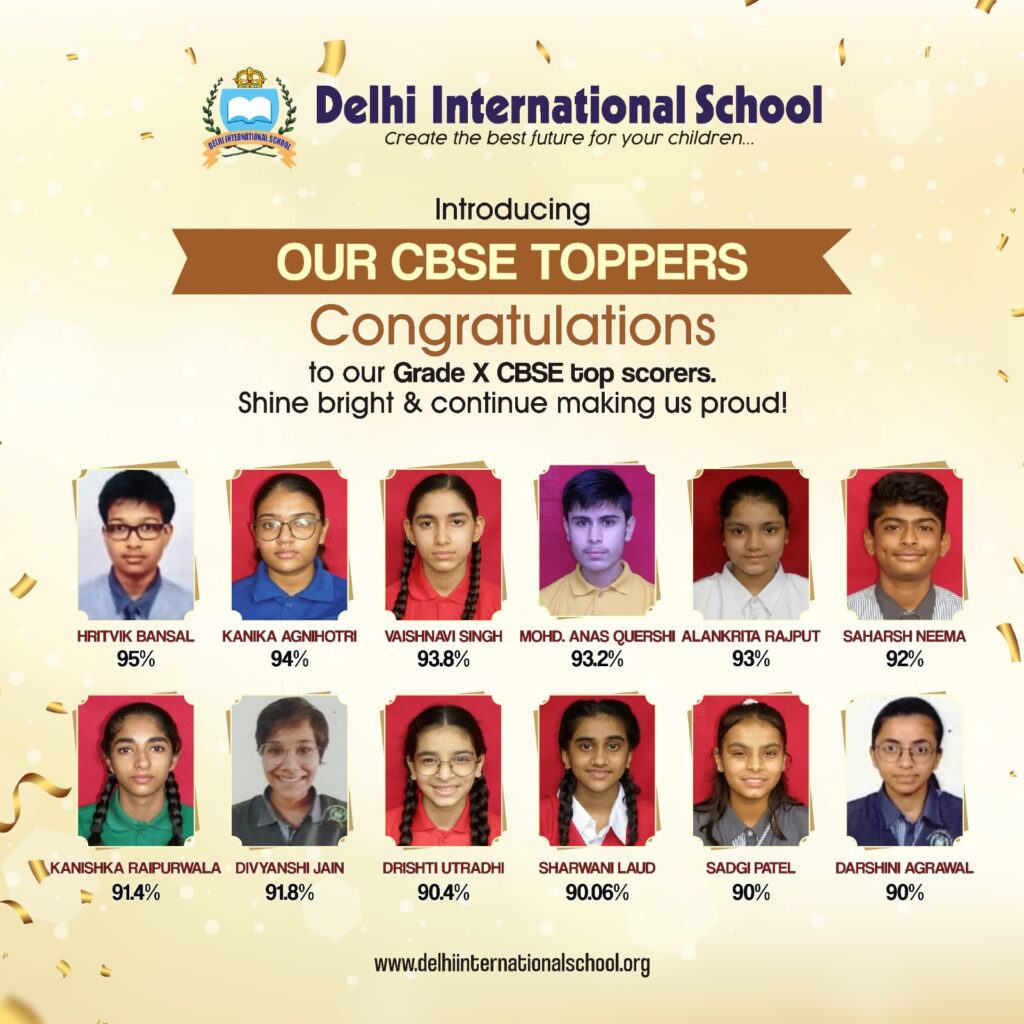 The students of Delhi International School once again brought laurel to the school in class X CBSE board Exam (2022-23) . The glorious moment brought great satisfaction on everybody’s face ,as it was the most awaited moment of this year. It is a day on which we are judged and awarded according to our performance a day of pride for the parents. Student congratulated each other and appreciated their teachers and management for their guidance during this tough time of academics. Surely it is the most exciting day of the academic year the day on which the heart beats fastest .It’s a proud moment for the school as its students could reach the destination where they were dreaming.
