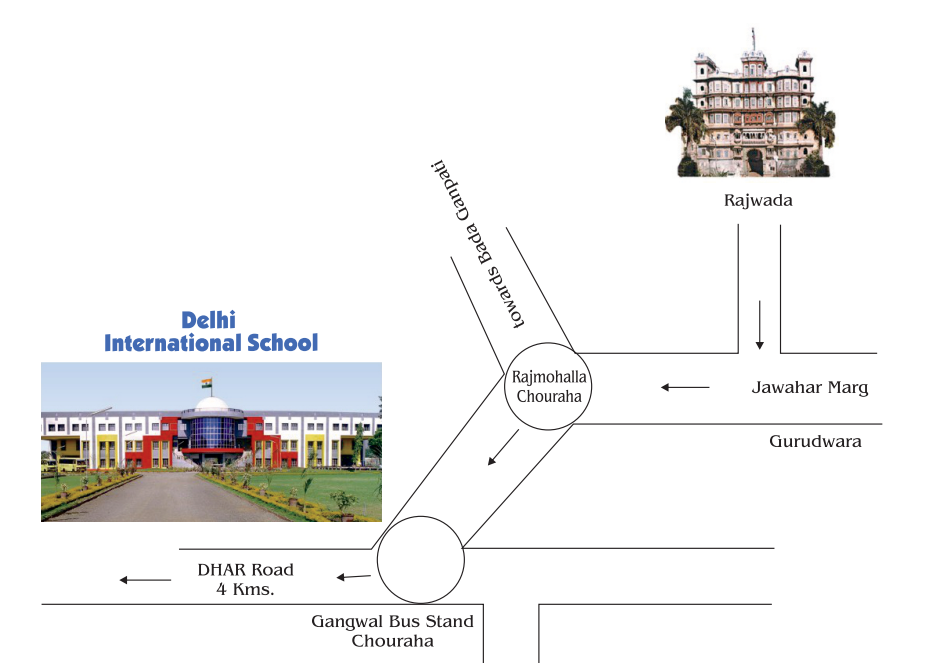 The school is located very close to the city of Indore (M.P.), on Indore-Dhar road just 7 kms from the heritage of Indore ‘Rajwada’, the heart of the city. The School has an attractive 20 acres campus. The site selected is bestowed with natural beauty, calm and quietude, peace and harmony, and with pollution free environment.